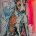 Portrait of a sweet dog painted at linnen with wooden frame